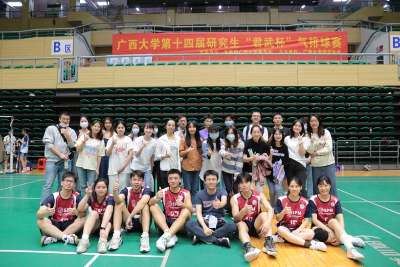 为丰富研究生课余生活,增强师生综合素质,加强各学院研究生之间的交流,自2020年10月30日起,广西大学举办第十四届研究生“君武杯”气排球比赛,本次比赛主题为“不惧疫网,研体齐飞”。经过多日激烈对战,AV直播 气排球队取得小组第二名的好成绩,成功晋级下一轮比赛。在小组赛比拼过程中,学院众多同学自发组成啦啦队为场上队员呐喊助威。学院党委书记聂鑫老师、党委副书记庞惠老师、学院侯俊丽老师前来为场上的参赛队员加油助威。接下来让我们一起来回顾小组赛事,感受比赛精彩瞬间吧!