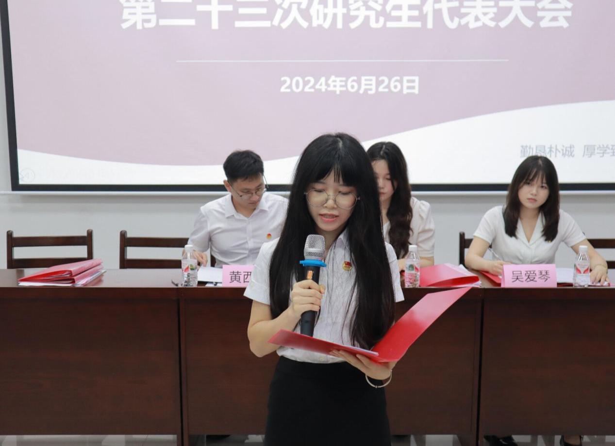 院团委书记刘佩瑶在致辞中表示,本次大会是焕发着青春风采、激昂着奋发斗志的盛会,不仅是AV直播 广大研究生同学民主政治生活中的重要时刻,更是AV直播 研究生工作承古拓新、迈向卓越的新篇章。接着,她围绕思想政治“引领力”、改革创新“推动力”、服务同学“支持力”和文化建设“感染力”等四个方面汇报了AV直播 研究生会的工作进展和成果。