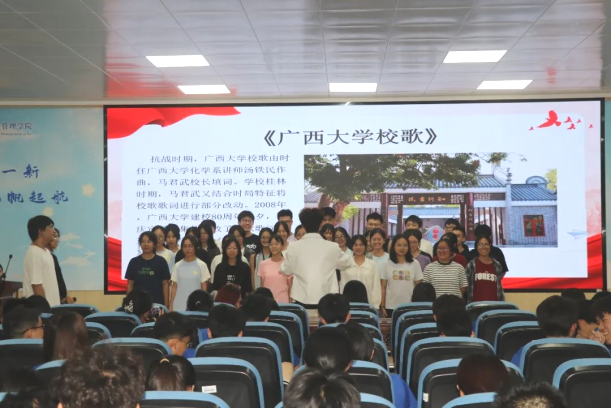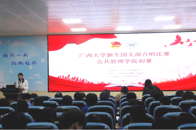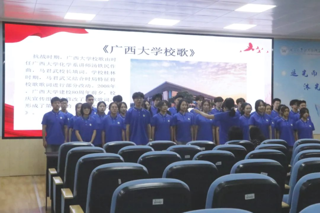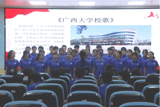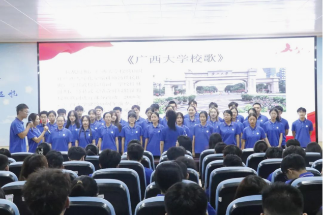 比赛环节中,各新生班级团支部以一首《广西大学校歌》作为规定曲目和一首自选曲目,用歌声弘扬爱国主旋律,展现青年奋发向上的青春力量。