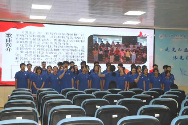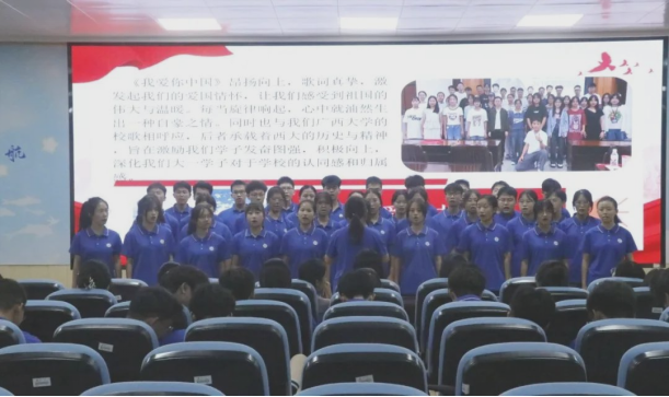 公管243班团支部合唱《广西大学校歌》和《我爱你中国》,以歌声抒发浓烈的爱国情怀,突出祖国的伟大与温暖。