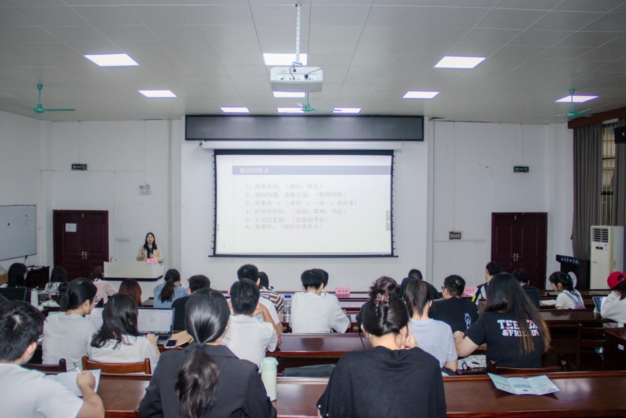 在集中点评结束后,活动进入了第二阶段,由吴凡带来题为“前程可期,‘职’面未来”的面试基础理论与实践分享。她从宏观视角出发,为同学们详细解读了公务员选拔的最新趋势,并结合自身丰富的经验,为大家提供了切实可行的备考策略,以帮助同学们更好地把握备考方向。吴凡的讲解涵盖了面试与面试技术、简历优化以及常见面试形式三个方面。她首先阐释了面试的核心构成与评估标准,帮助同学们理解了面试作为双向沟通与考察的科学性与目的性。接着,她强调简历需精炼内容、突出亮点,以增强岗位匹配度,从而提升面试机会。最后,她详细介绍了结构化面试和无领导小组讨论的流程与特点,帮助同学们掌握不同面试形式的应对策略,提供了系统的备考指导。吴凡的讲解为同学们在求职准备上提供了全方位的支持。