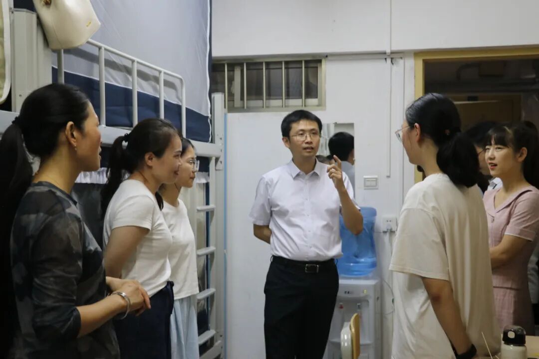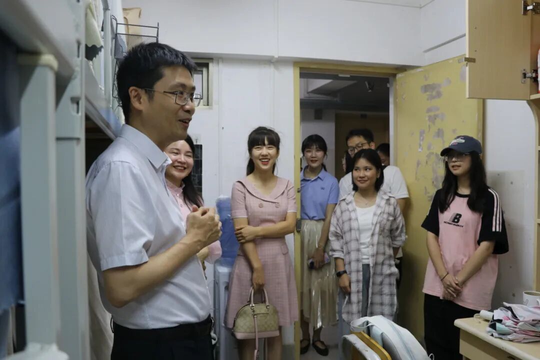 9月13日晚,院党委书记聂鑫带队走访2025级新生宿舍,看望慰问刚刚入学的同学,为他们送上学院的温暖关怀与诚挚问候。党委副书记于丹、团委书记刘佩瑶、学工组辅导员、各新生班班主任与班助,以及团委和学生会的学生骨干共同参加走访。