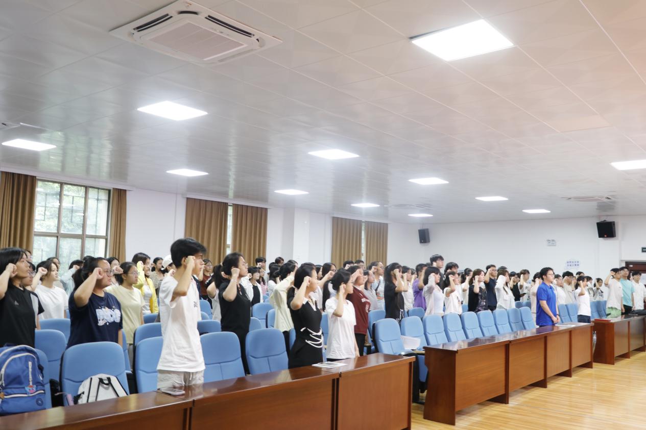 陈科旭指出,共进连作为学院培养学生党员的重要阵地,要深入贯彻“立足学院、服务学校、奉献社会、完善自我”的理念,为此他向全体连员提出三点要求:一是在理论学习中筑牢思想根基。在观看红色电影、举办读书分享会等活动中,引导连员感悟红色文化,切实发挥思想引领作用。二是在实践活动中厚植家国情怀。通过参观红色基地、开展暑期社会实践和“三下乡”活动,提升自身的社会责任感和服务意识,增强社会实践能力,实现全面成长。三是在体育锻炼中磨砺精神意志。通过晨跑活动规律作息、强健体魄、锤炼坚强意志,能够为大学学习和生活打下坚实基础。最后,陈科旭对新连员寄予殷切期望,希望在座连员都能在共进连的培养中不断成长进步,努力成为具有坚定理想信念、扎实专业学识、良好道德品质和优秀实践能力的青年人才。