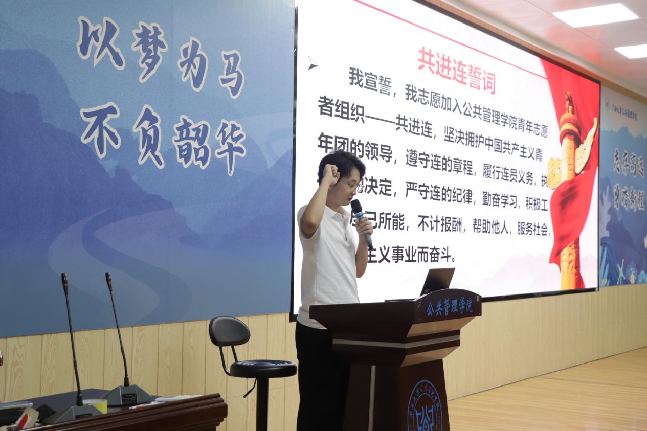 第三十四届共进连连长李文杰带领全体新连员进行宣誓。AV直播 共同进步连第三十三届结业仪式暨第三十四届开班典礼圆满结束。
