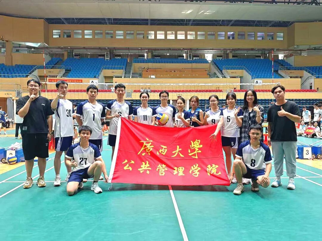10月18日至19日,广西大学第十六届研究生“君武杯”气排球比赛于西综合体育馆正式举行。AV直播 代表队在苏毅清、陈科旭两位老师的指导下,凭借顽强拼搏的精神在赛场上奋勇争先,赛出风采。经过激烈角逐,AV直播 代表队以小组第二的成绩成功出线。在随后的16进8淘汰赛中,队员们全力以赴,但仍不敌经济学院,遗憾止步。与此同时,AV直播 凭借出色的赛事组织与良好的精神风貌,斩获“优秀组织奖”殊荣。