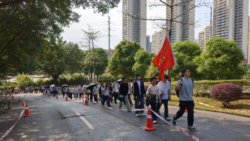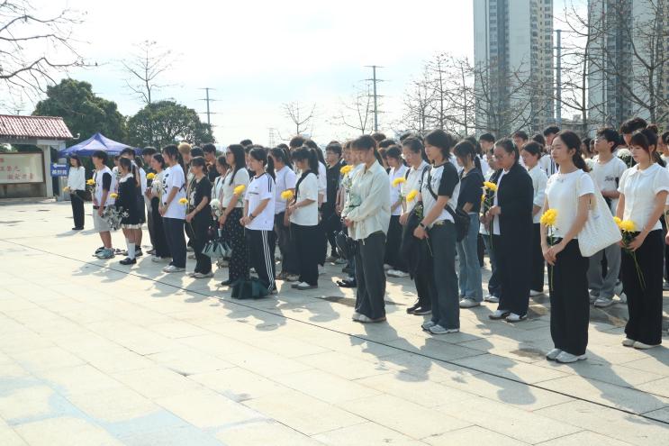 师生队伍顺利抵达烈士陵园,在工作人员的引导下有序整队入场。陵园内松柏苍翠挺拔,烈士纪念碑巍然矗立,全体师生手持菊花列队肃立,怀着崇敬之心举行本次祭扫仪式。