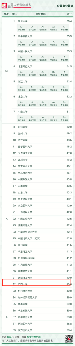 喜报 | 2022软科中国大学专业排名发布, AV直播 公共事业管理专业获得A层次评级