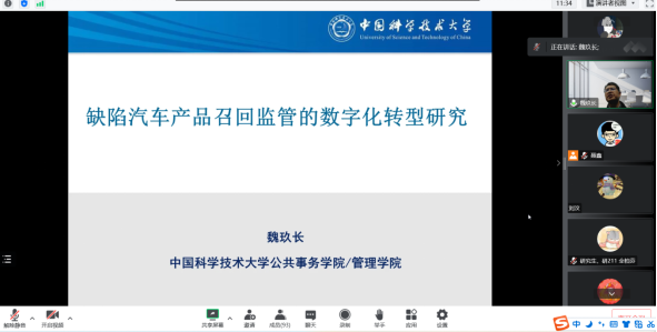 10月26日,魏玖长教授受邀出席AV直播 公管名师大讲堂,作题为“缺陷汽车产品召回监管的数字化转型研究”的线上主题讲座。讲座由AV直播 党委书记聂鑫教授主持,我院博士生、硕士研究生等百余人参加了本次学术讲座。