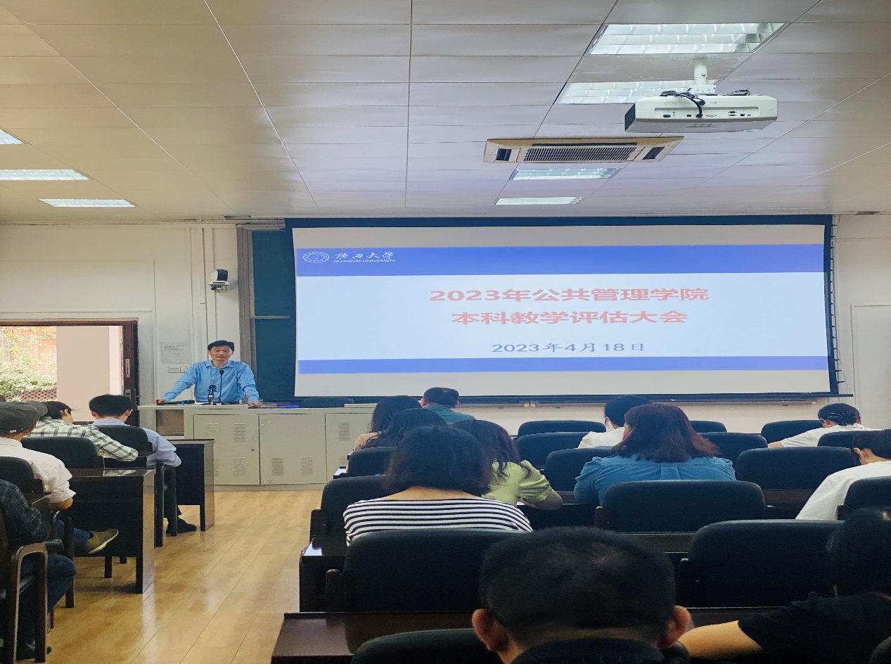 会上,首先由周均旭副院长传达学校动员会会议精神,他指出全院教师应该牢牢树立主人翁意识,提高政治站位,以饱满的精神面貌投入到评估工作中去。
