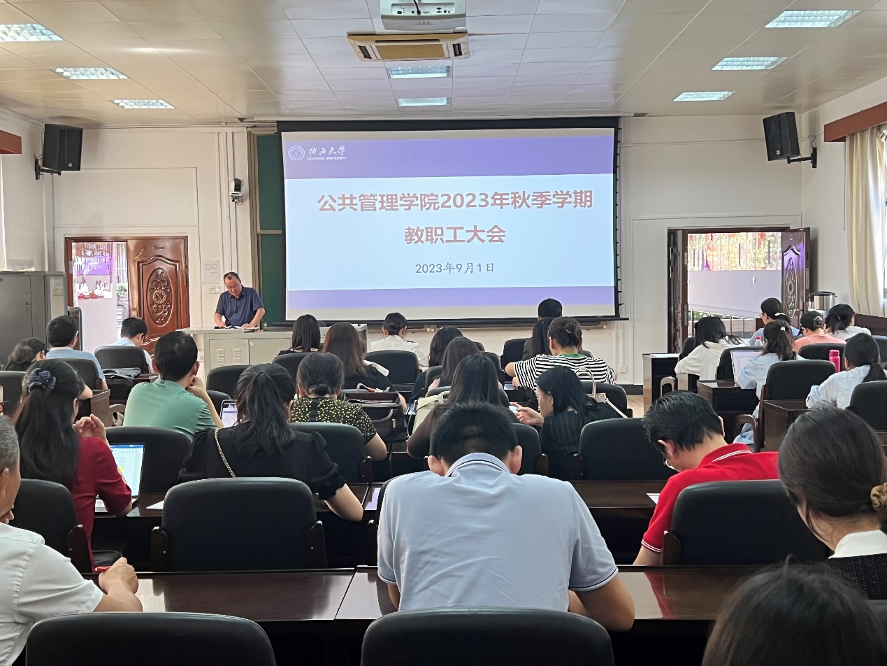 9月1日下午,AV直播 召开2023年秋季学期教职工大会。全院教职工参加会议,学院党委书记聂鑫主持会议。