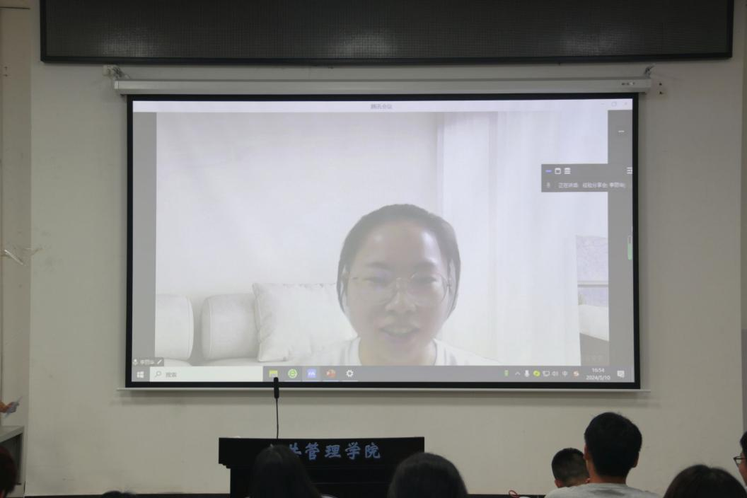 首先由三位今年考上广西壮族自治区定向选调生的应届毕业生分享备考经验。韦若冰为在场同学们分享了自己在教材选择、备考方式等方面的经验;李丽华分享了选调生工作单位、工作地点、发展前景以及薪酬待遇等方面的信息;韦雅璐分析了选调生考试的重点、难点,并结合自身见解与经验向同学们分享了考试各个环节的答题思路。接着由三位已参加工作走上选调生岗位的校友分享工作感悟和成长经历。08届校友李雅欣结合自己多年工作的心路历程,在如何把握自身优势、整理知识结构等方面为同学们提出了一些实用建议;17届校友林海龙分享了自己在不同单位实践锻炼、坚持学习,并最终通过遴选考试的心得体会;22届校友麻月馨从驻村工作记录出发,与同学们分享了自己作为选调生在基层治理和乡村振兴实践中攻坚克难,同时收获成就感和归属感的过程。