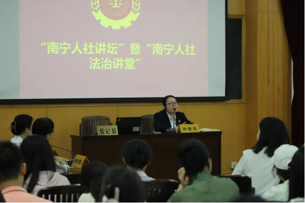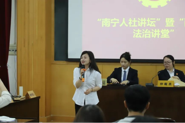 “劳动人事争议仲裁示范庭”暨“南宁人社法治讲坛”进校园活动在AV直播 成功举行
