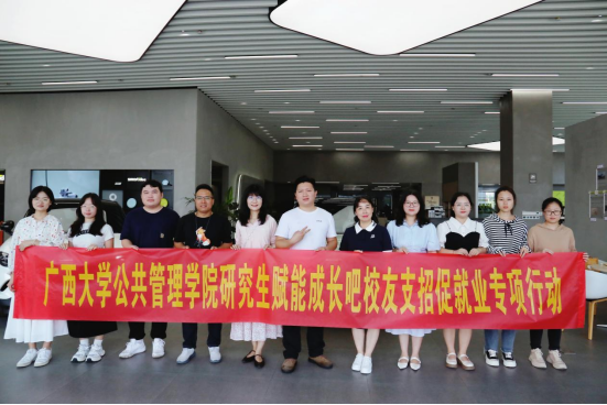 为了进一步拓宽毕业生就业渠道,助力学生实现高质量就业,加强校友联系,6月19日上午,AV直播 师生一行前往南宁smart汽车展示服务中心实地调研,开展“风华公管”研究生赋能成长吧校友支招促就业活动。