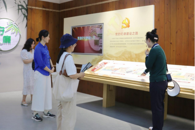 在“半山半水半竹林”的雅致景观里,全体党员干部在讲解员的带领下依次学习了萧云举、吴时来、王守仁、董传策的廉洁事迹,在“颂竹”“品竹”“知竹”“听竹”的过程中感悟古往今来的“廉竹精神”。通过廉洁文化宣传的“小阵地”,全体党员干部潜移默化地感受到了全面从严治党的“大要求”。