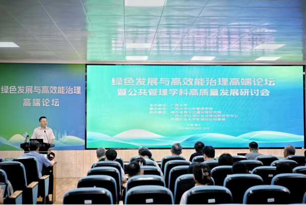 绿色发展与高效能治理高端论坛由广西大学主办,AV直播 承办,绿色发展与边疆治理研究院、广西大学区域社会治理创新研究中心、中国矿业大学彭城论坛组委会共同协办。来自北京大学等30余所单位的领域内知名专家、学者以及AV直播 全体教师、部分研究生、本科生共300余人参加论坛。
