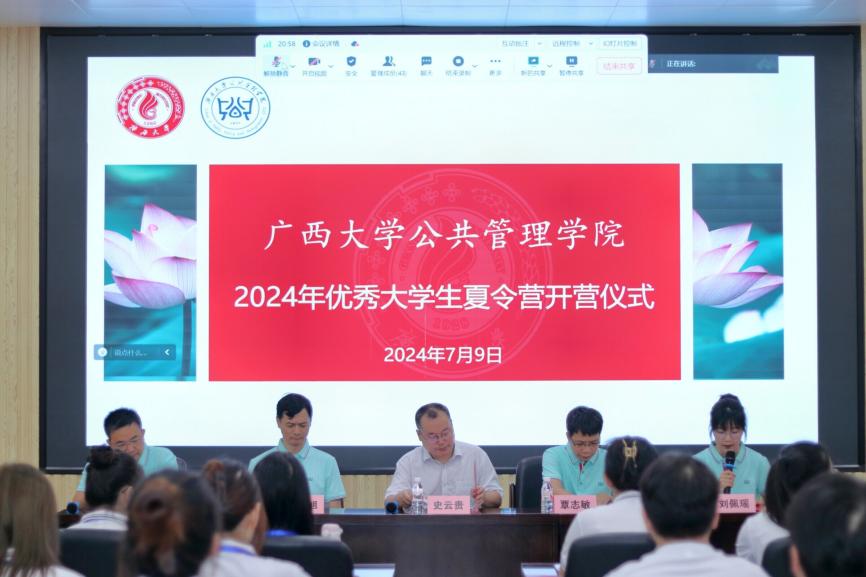 7月9日上午,AV直播 2024年优秀大学生“博学”夏令营正式拉开帷幕。AV直播 院长史云贵、副院长周均旭、副院长覃志敏、MPA教育中心副主任熊斌出席了开营仪式。此次夏令营是AV直播 连续第六年举办的优秀大学生“博学”夏令营,以“线上+线下”的形式开展,来自全国40多所高校的70余名营员相聚云端、汇聚校园。
