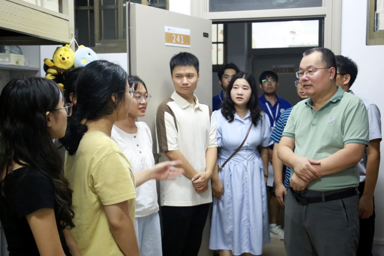 在走访过程中,史云贵院长亲切地向新生们送上了诚挚的问候与关怀。他深入宿舍,关心同学们的住宿环境与生活细节,并鼓励同学们要勇于面对新环境的挑战,积极调整心态,以饱满的热情投入到学习之中。他强调,广西大学作为一所历史悠久、学术氛围浓厚的高等学府,将为学生们提供广阔的发展平台。他期望每位学生都能珍惜这段宝贵的大学时光,不断提升自我,为实现个人梦想与人生价值奠定坚实基础。