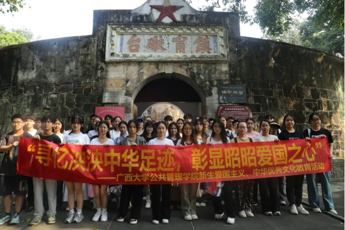 公共事业管理本科2024级2班新生前往南宁市人民公园,参观镇宁炮台和近现代国防历史陈列馆。AV直播 新生参观国防教育基地,了解南宁市近现代国防战事,感受南宁军民的爱国主义光荣传统和英勇不屈的英雄气概,铭记邓小平等革命领导人在广西的革命伟绩,提升国防意识,厚植家国情怀,满怀爱国之心。