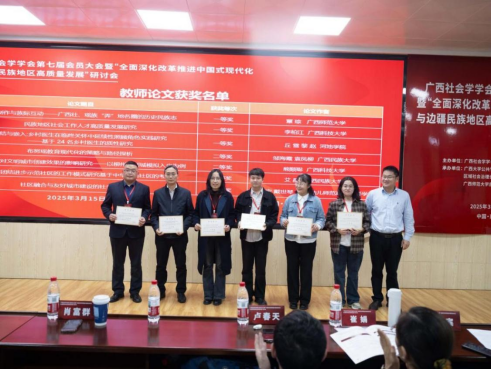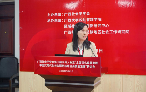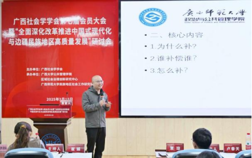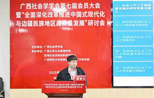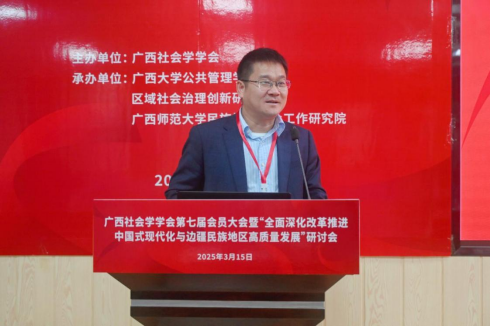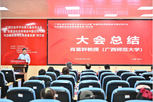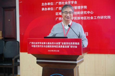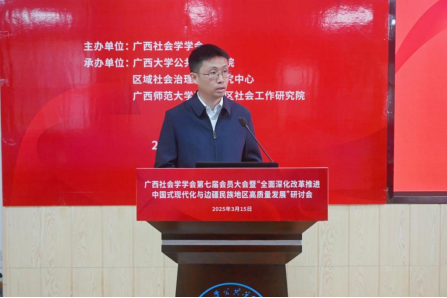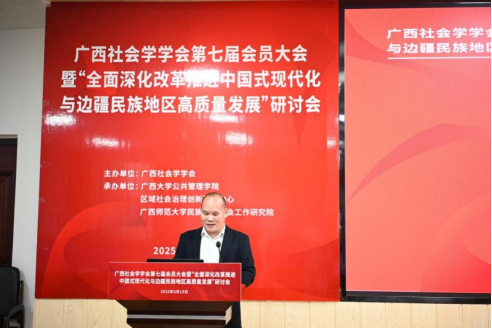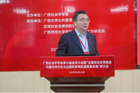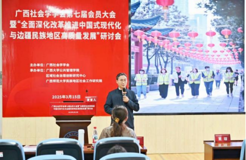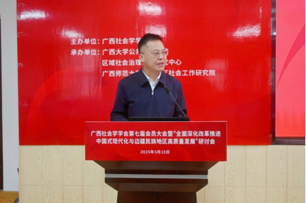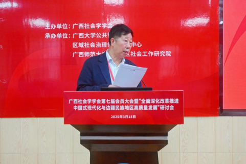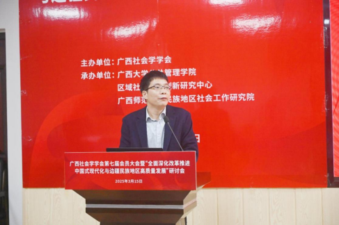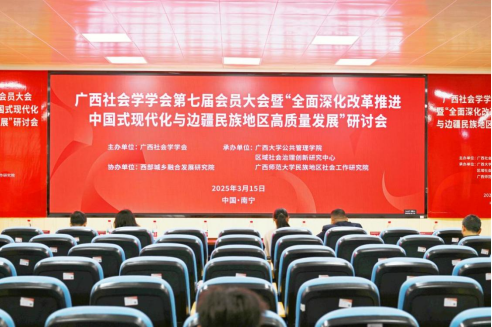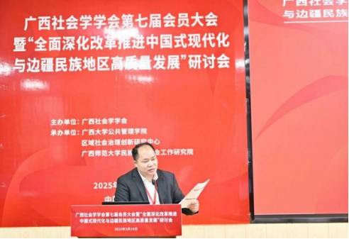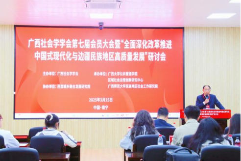 2025年3月15日,广西社会学学会第七届会员大会暨“全面深化改革推进中国式现代化与边疆民族地区高质量发展”研讨会在广西大学成功举办。活动由广西社会学学会主办,AV直播 、区域社会治理创新研究中心、广西师范大学民族地区社会工作研究院联合承办,得到了广西人文社会科学重点研究基地西部城乡融合发展研究院的支持。