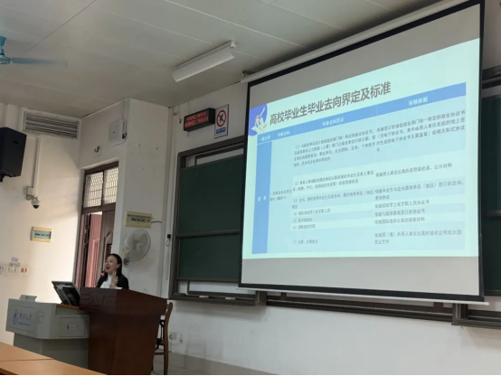 黄文静重点强调了毕业前的规范管理要求,提醒学生严格遵守请假制度,及时完善个人档案中的综合表现表、毕业生登记表等材料。针对助学贷款学生群体,黄文静详细解读了国家就业补贴政策,并建议毕业生通过学校就业信息平台实时关注岗位推送,做好考研、参军等多元发展路径的信息储备。"档案是职业生涯的'身份证',每一步都要严谨对待。"黄文静特别指出,离校前需确认档案转递单位信息,避免因疏漏影响后续发展。