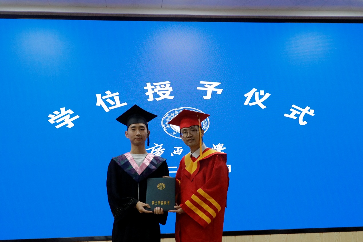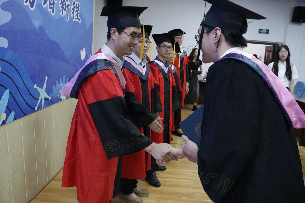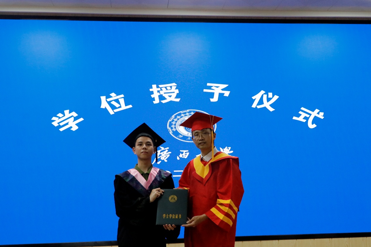进入学位授予仪式环节,副院长周均旭宣读学位授予决定后,本科生、学术型硕士及博士生毕业生按顺序依次上台接受学位授予。院党委书记聂鑫为获得学位的毕业生行拨穗礼并授予学位证书、合影留念。