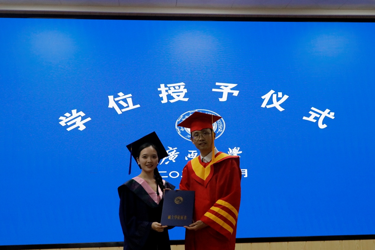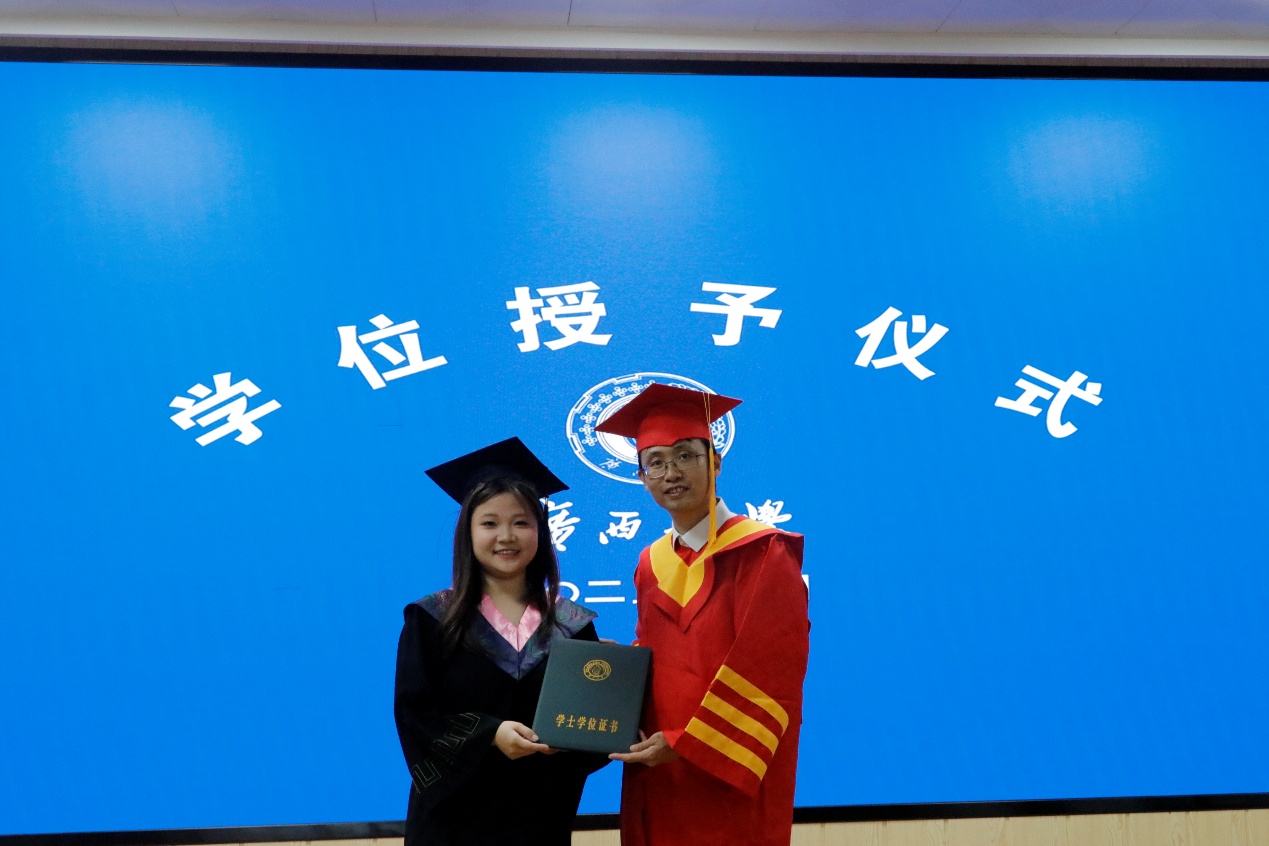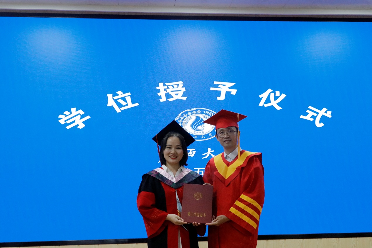 进入学位授予仪式环节,副院长周均旭宣读学位授予决定后,本科生、学术型硕士及博士生毕业生按顺序依次上台接受学位授予。院党委书记聂鑫为获得学位的毕业生行拨穗礼并授予学位证书、合影留念。