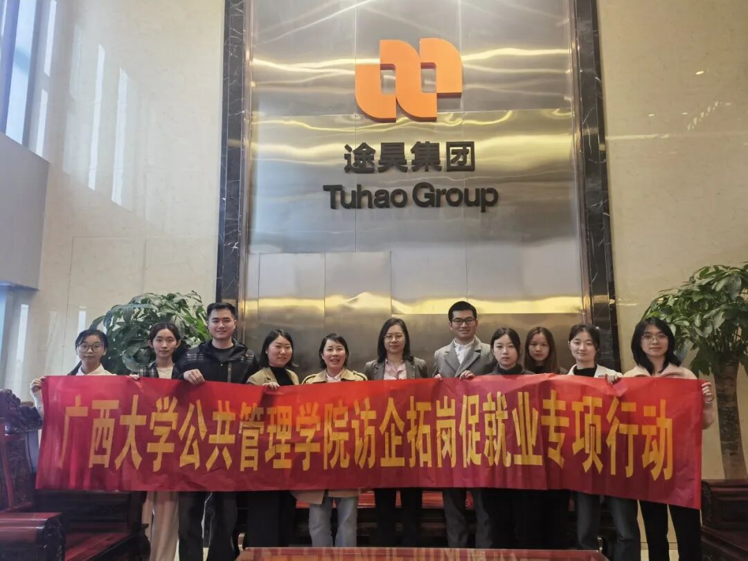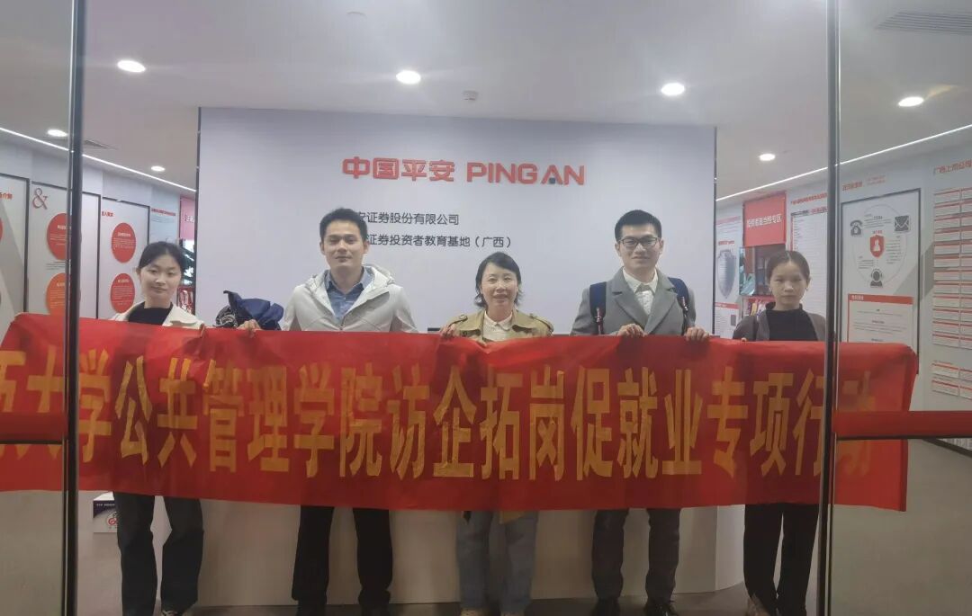 3月9日上午,AV直播 组织师生代表前往广西途昊集团有限公司和平安证券股份有限公司广西分公司开展访企拓岗促就业专项行动。本次活动由学工组辅导员黄文静带队,多位学生代表共同参与,通过与行业资深从业者进行座谈与经验分享,为AV直播 学子搭建直面行业前沿的交流平台,为他们进一步提高工作水平,顺利进入社会提供坚实基础。