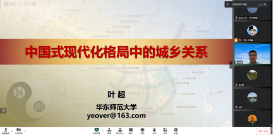 10月27日晚,华东师范大学叶超教授受邀来到公管名师大讲堂,以线上会议的方式为AV直播 师生带来了中国式现代格局中的城乡关系的主题讲座,院党委书记聂鑫教授主持本次讲座,龙花楼教授、徐莺副教授等多位老师以及众多博士、硕士研究生参与此次讲座。