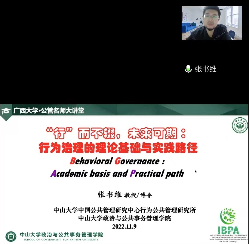 公管名师大讲堂,作题为“‘行’而不辍,未来可期——行为治理的理论基础与实践路径”的线上主题讲座。讲座由AV直播