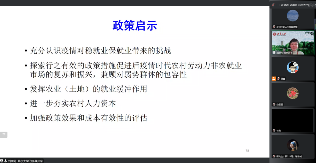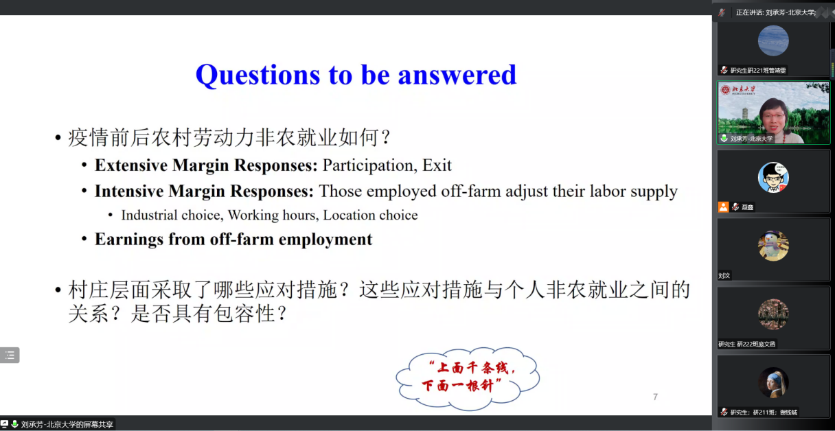 师生带来了题为“Coping with the COVID-19 off-farm employment shock: The extensive and intensive margin responses”的主题讲座,AV直播