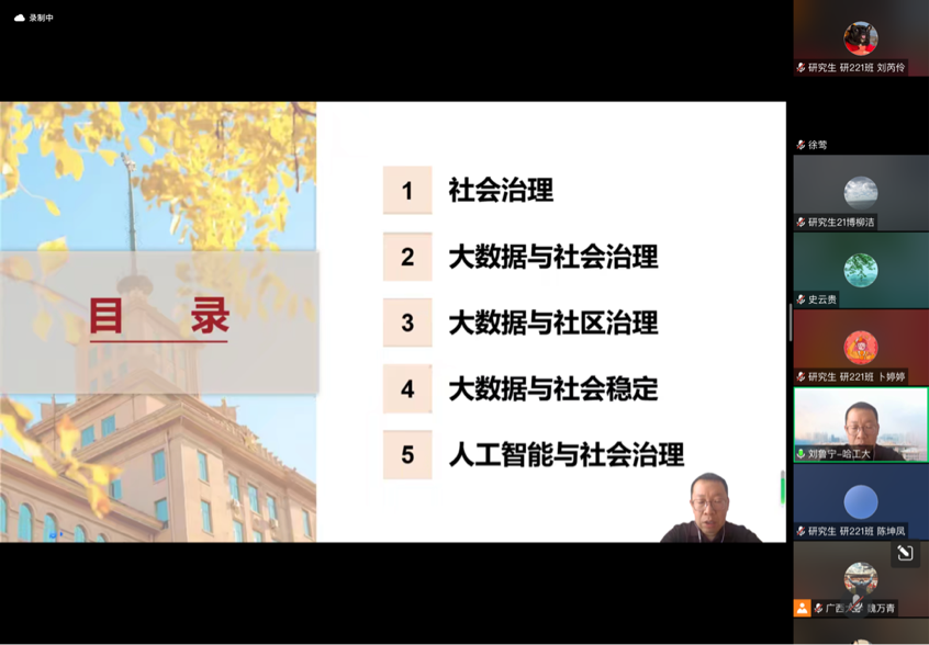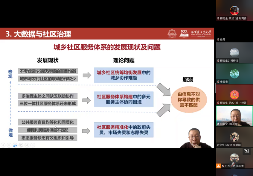 2月25日上午,刘鲁宁教授受邀为AV直播 师生作题为“大数据赋能基层社会治理”的线上讲座。本次讲座由AV直播 副院长魏万青教授主持,AV直播 史云贵院长、周均旭副院长等众多教师以及百余名博士、硕士研究生参加了此次讲座。