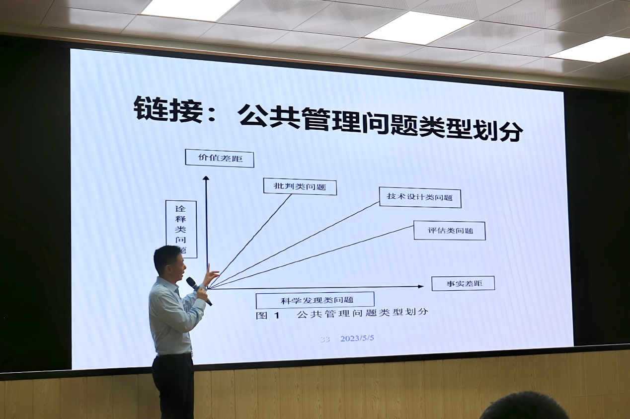 关于论文结构,范逢春讲述了公共管理问题的分类与应用,并以优秀的硕博论文为例分别阐述科技发现类、技术设计类、评估类、批判类、诠释类的论文结构。他还指出当前论文结构中常出现要素不齐、逻辑混乱、比例失调和结构杂糅等问题,提醒大家在构思时要引以为鉴。
