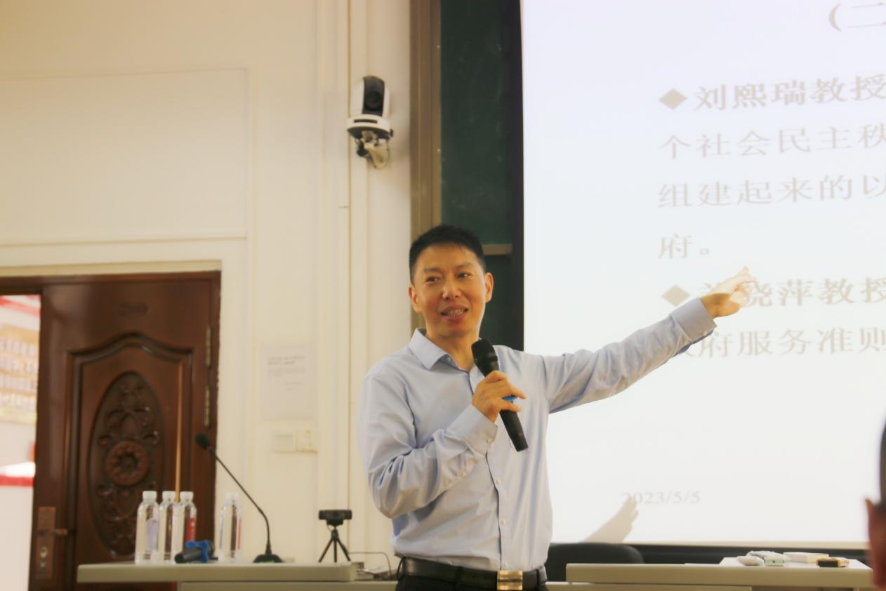5月5日上午,四川大学AV直播 范逢春教授受邀参加AV直播 公管名师大讲堂,于公管学院107报告厅为AV直播 师生作题为“服务型政府的历史演进:一个成都故事”的主题讲座。本次讲座由AV直播 副院长魏万青教授主持,院长史云贵教授、罗树杰教授、吴凡副教授、周文栋老师、黄六招老师等众多校内教师及博士研究生、硕士研究生参与本次讲座。