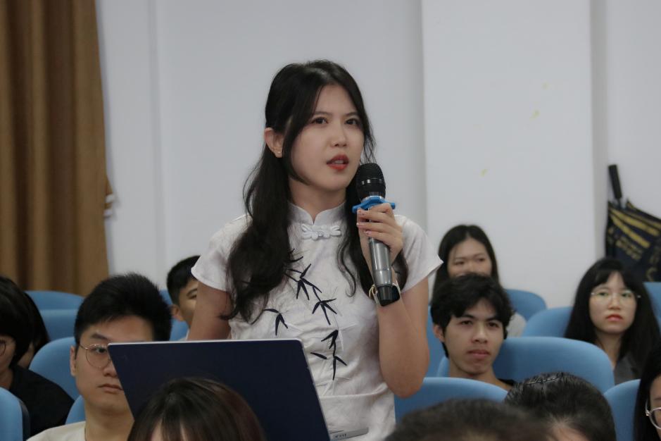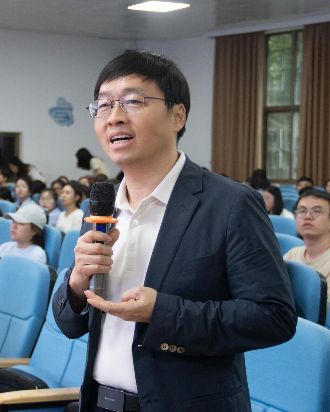 在交流互动环节,龙花楼教授谈到应注重学科交叉,利用AI技术推动研究范式转型,以满足社会需求,并就AI技术在数字经济方面的运用与陈教授展开了讨论。AV直播 21级硕士生杨紫馨就AI技术在公共管理中的应用提出了自己的疑问,陈教授进行了详细解答,并再次强调,“AI+公共治理”的总方向应是人机协同与人机融合。至此,讲座在热烈的氛围中圆满结束。
