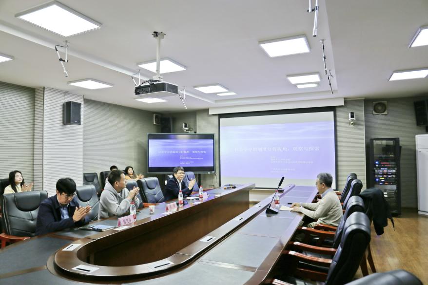 11月28日上午,加州大学河滨分校社会学系教授赵伟博士于AV直播 415报告厅作题为《社会学中的制度分析视角:观察与探索》的学术讲座。本次讲座由AV直播 副院长覃志敏副教授主持,副院长曾凡军教授、谢舜教授、吴凡教授及20余名博士、硕士研究生到场聆听。