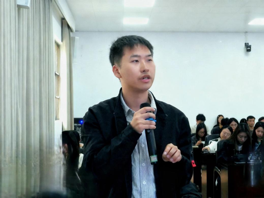 在交流环节,同学们围绕“在选择研究方向时,应顺势而为还是随机应变”的问题进行积极讨论。邵帅结合自身学习生涯指出,研究兴趣很重要,同学们要保持学习的主动性,既要紧跟时代浪潮,又要坚守自身“研究阵地”。