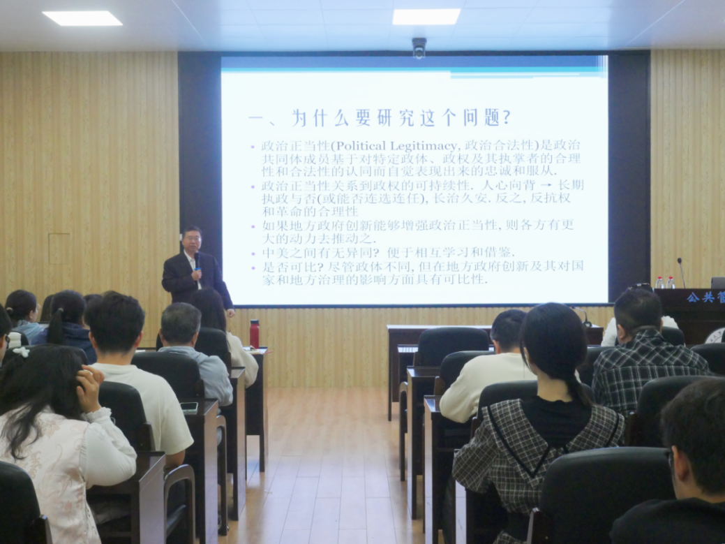 11月7日上午,北京大学中国政治学研究中心学术委员会何增科教授受邀于AV直播 107报告厅开展题为《地方政府创新与政治正当性:中美之间的比较研究》的学术讲座。本次讲座由院党委书记唐旭彬主持,吸引AV直播 众多师生参加,现场学术研讨氛围浓厚。