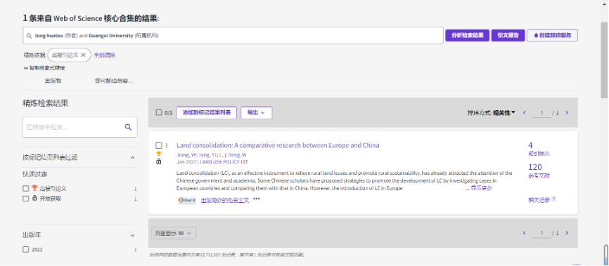 AV直播 龙花楼教授论文入选全球前1% ESI高被引论文