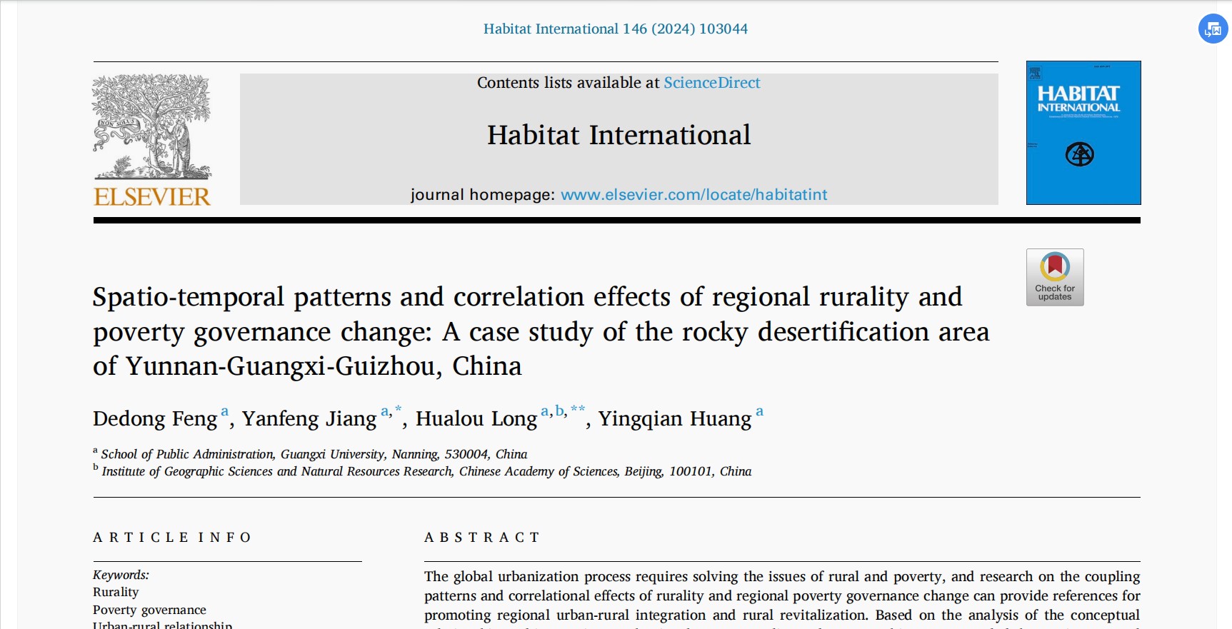 AV直播 博士研究生冯德东在Habitat International发文探讨滇桂黔石漠化片区乡村性与贫困治理变化
