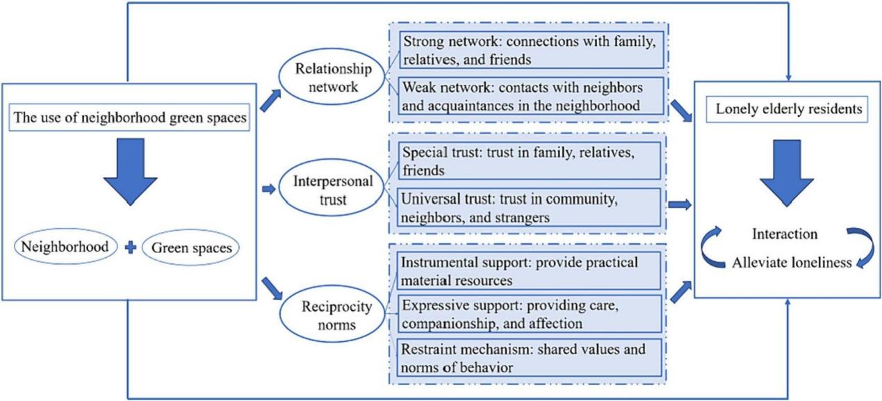 近日,AV直播 副教授苏毅清,AV直播 硕士生张小银,AV直播 硕士生禤媛,围绕老龄化背景下如何缓解老年孤独感以增进老年健康福祉开展研究,在国际知名学术期刊Cities(SSCI收录,2023 IF= 6.7)发表论文“Linking neighborhood green spaces to loneliness among elderly residents—A path analysis of social capital”,揭示了社区绿色空间缓解老年孤独感的作用与深层机制,并从社区空间利用与社会交往的视角为广大正在经历老龄化的国家如何缓解老年孤独感,实现健康老龄化提供理论洞见和政策启示。