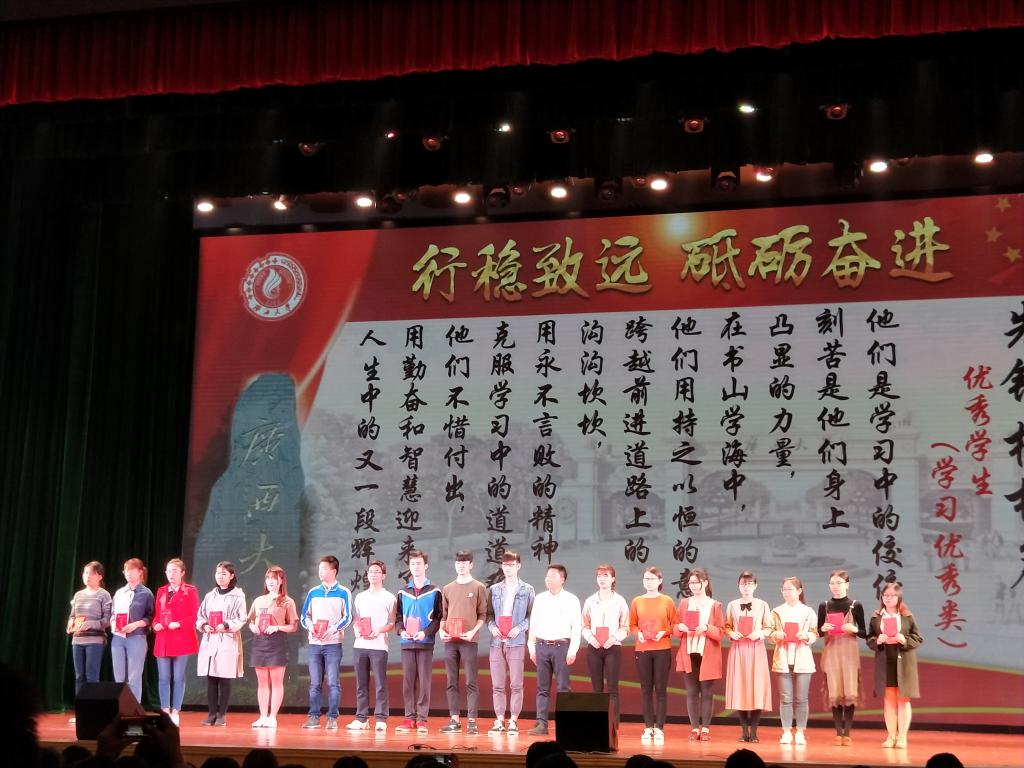 随后,第一轮颁奖开始进行。在颁布的众多奖项中,公管学院尽展风貌,一举拿下课外体育锻炼达人、优秀学生干部、学习优秀类优秀学生、学术科技类优秀学生、技能竞赛类优秀学生、国家奖学金(研究生)的奖项,并分别由AV直播 学生代表麻海清、陈庆娟、沈庆铭等同学领取。