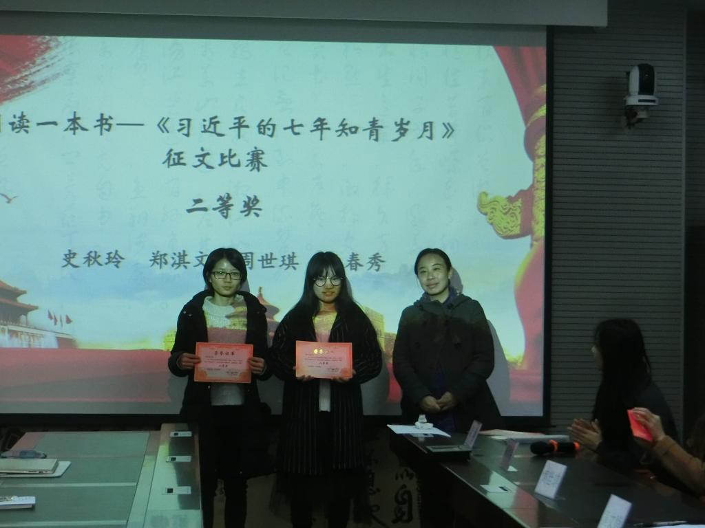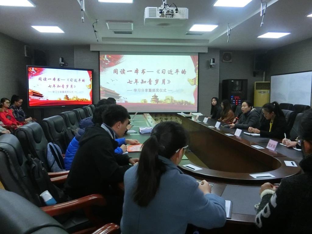 于1月9日下午16时在学院415教室举行“同读一本书”——《习近平的七年知青岁月》学习分享会暨颁奖仪式。公管学院黄文静老师、各班团支书、团委委员以及获奖的同学参加了此次会议。