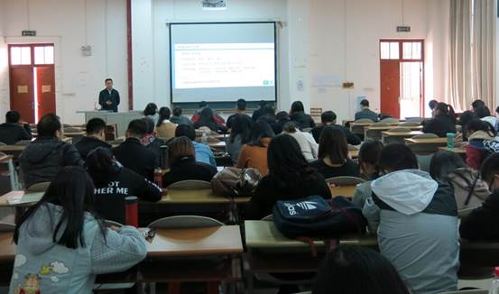 在报告会开始前,李小文副院长隆重地介绍了邢怀滨教授。邢怀滨教授是哲学硕士与博士,现挂任广西科技厅副厅长,国家科技部科技评估中心主任助理,主要从事科技创新政策与管理、公共政策评估等方面的管理和研究工作,出色的学历与工作背景让同学们不禁心生敬佩之意。