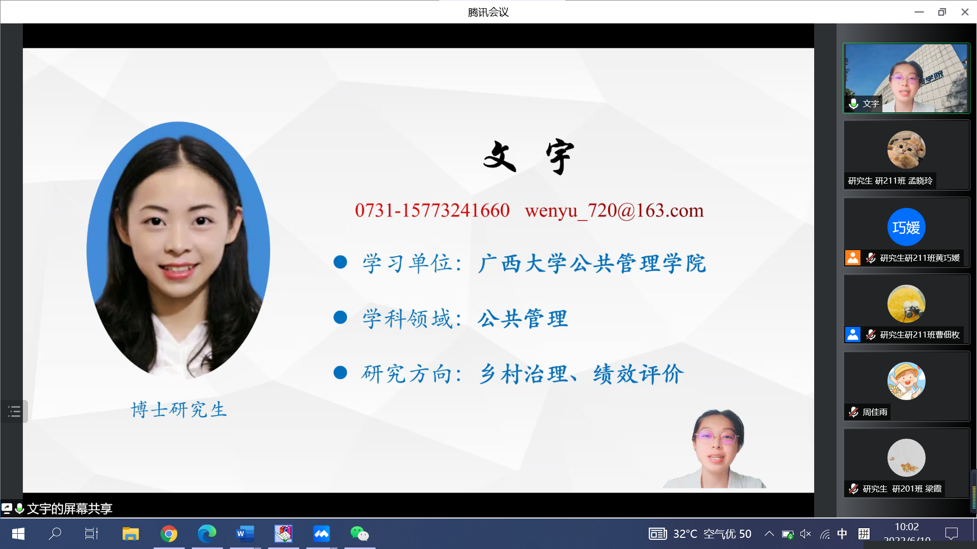 2022年6月10日10:00,AV直播 第25期学术沙龙以腾讯会议的形式顺利开展。本期学术沙龙的主题为“公共政策与乡村治理”,邀请AV直播 苏毅清老师参与讨论,文宇、李莹两位同学作为分享人分别就她们的论文进行分享,吸引了AV直播 众多博士生、硕士生前来参加。本期沙龙由学术部黄巧媛同学主持。