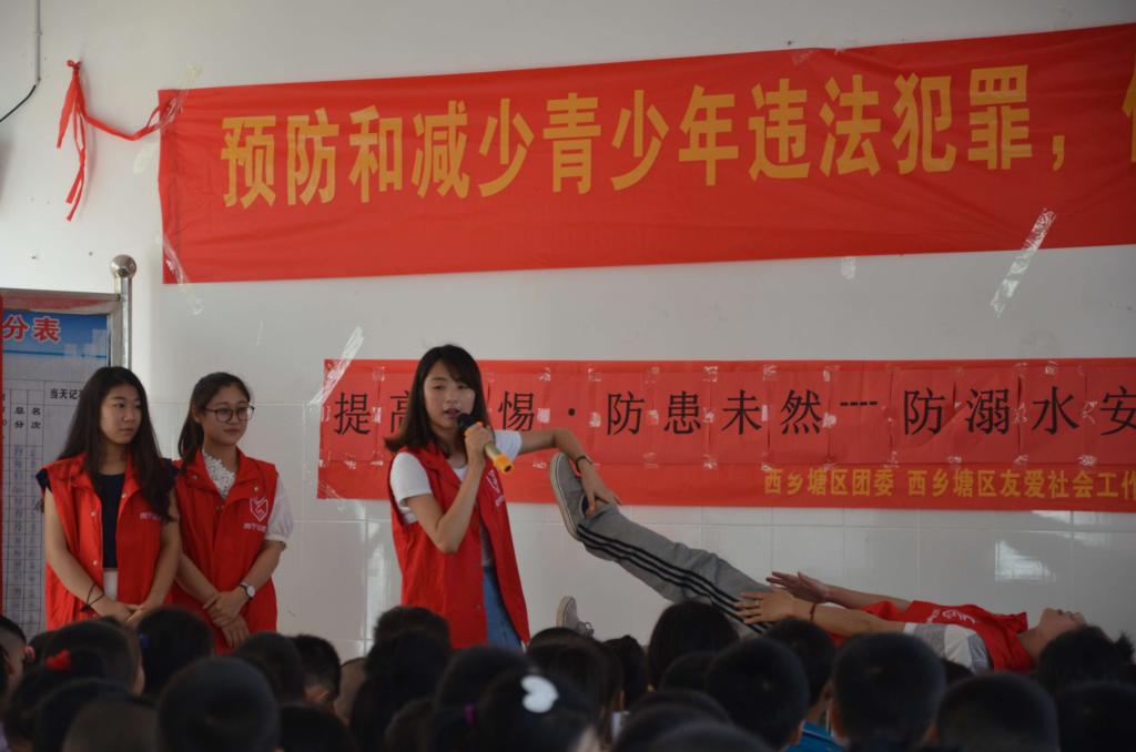 党员志愿者一来到石埠中心小学,便帮助街道团工委的工作人员布置现场,以便同学们有序入场。在工作人员的主持下,党员志愿者开始了安全教育活动。通过王羽妍同学的讲解以及几位党员志愿者的亲身示范,小学生们都更深入地了解了防溺水的“六个不”、救助他人以及自救的方法。在为大家示范心肺复苏的救助办法时,小学生们更是积极起身学习,一起数数:“1,2,3,4……”通过有趣的示范让小学生们有效地学习救助知识。