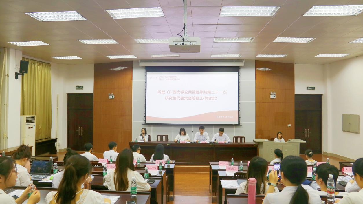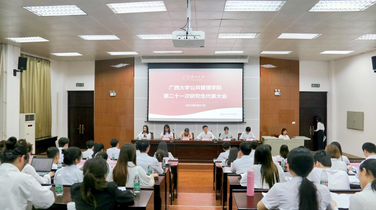 在隆重庆祝中国共产主义青年团成立100周年、喜迎党的二十大胜利召开的热烈氛围中,6月21日,AV直播 第二十一次研究生代表大会在学院106教室顺利召开。AV直播 党委书记聂鑫老师,党委副书记庞惠老师,团委书记黄文静老师,团委副书记刘佩瑶老师,校研究生会主席团代表邹阳同学,兄弟学院研究生会主席团代表,AV直播 第二十届研究生会主席团以及学院各研究生班级学生代表出席本次会议。