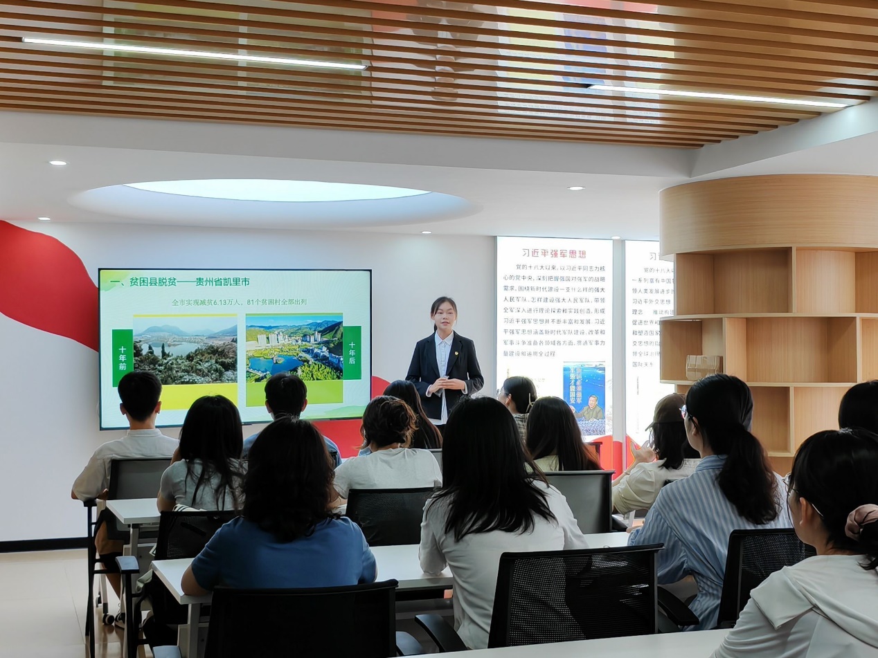 龚芯沅从乡村新面貌-走进山水田园、小康新画卷-赋能电商经济、八方聚力-促进乡村振兴三个维度深入剖析乡村振兴之路,透过案例精讲使党员同志们深刻理解绿色发展与乡村振兴相结合的战略意义与实践路径。