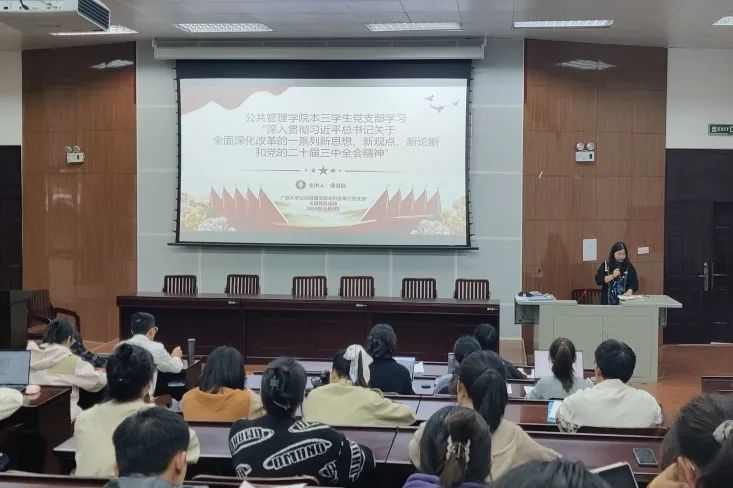 为深化对习近平总书记关于全面深化改革一系列新思想、新观点、新论断的理解,进一步提升党员的政治素养和理论水平,12月6日下午,AV直播 本科第三学生党支部组织开展了习近平总书记关于全面深化改革的一系列新思想、新观点、新论断和党的二十届三中全会精神专题学习活动。会议由本科第三党支部副书记孙琪然主持,支部全体党员参会。