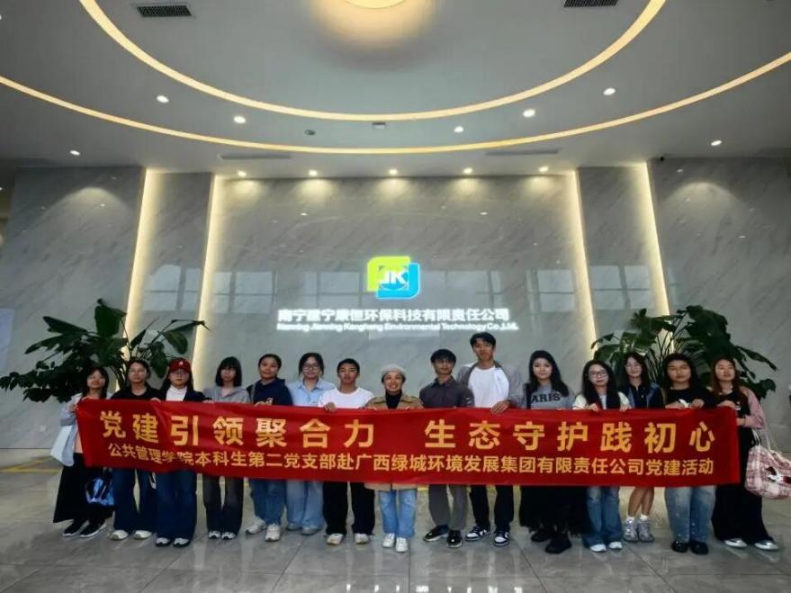 为深刻领悟习近平生态文明思想,以理论赋能实际,创新党建形式,具象理解国家“双碳”战略的基层实践,体会民生工程背后的科技支撑与管理智慧,AV直播 组织师生于10月30日前往广西绿城环境发展集团有限责任公司开展党建活动,在了解生态文明建设成果中强化党员担当,拓宽服务社会的视野,提升组织生活质效。此次活动由院党委专职组织员鞠平凡,学工组辅导员黄文静、陈科旭带队,本科第二党支部发起活动,本科第二党支部及学院其他党支部代表共50余人参与活动。