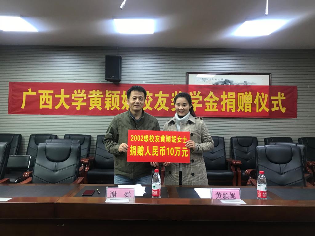 广西大学“黄颖妮校友奖学金”捐赠仪式在AV直播 举行